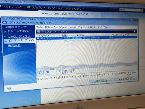 Acronis True Image HD 2014のブートメディアからノートパソコンを起動させます。