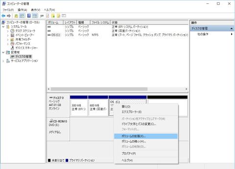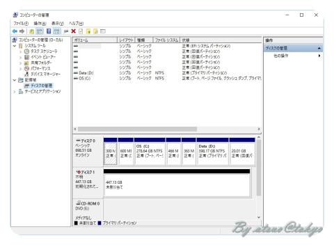 「ディスクの管理」での作業は最悪 OSが起動しなくなる事もあるので、よく分からない方は行わない方が良いでしょう。
