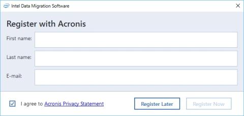 開発元(Acronis)のユーザー登録画面が表示されるので[I agree to Acronis Privacy Statement]にチェックを入れ[Register Later]をクリックします(ユーザー登録されません)。
