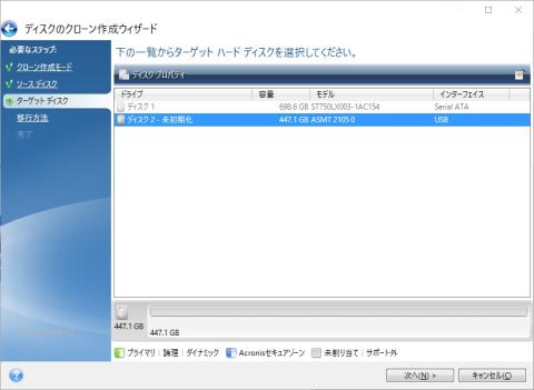 今回は丸々ディスク内容を移行しますので「ディスクのクローン作成」をクリックします。