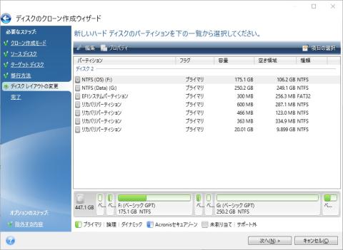 SSD 540sの移行完了後のパーティション分割状況が表示されます。