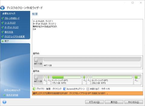 クローン作成する概要が表示されるので、問題が無ければ[実行(P) >」をクリックします。