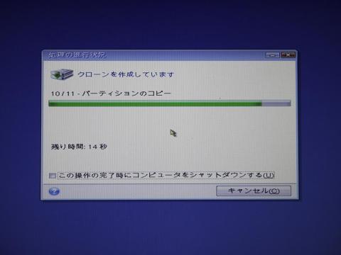 また、シャットダウンするにチェックを入れませんでしたが、クローン作成終了後 PCはシャットダウンされました。
