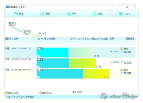 初回のみ「ログオンまでの時間」が 8秒かかりましたが、その後ずっと 7秒で起動しています。