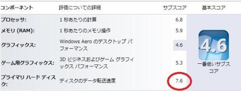 とはいえWindows7のOS標準のベンチマークでは推奨の5を超える