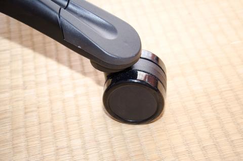 ポリウレタンキャスターということで柔らかいのかな?と思っていましたが、触ってみても結構硬いです。バリとかも結構あるので、本当に床に傷をつけづらいのか正直疑問です。テストしたいところなのですが、現環境は畳か絨毯のみでフローリングがありません。申し訳ないですが、キャスターの性能テストは出来ませんでした。