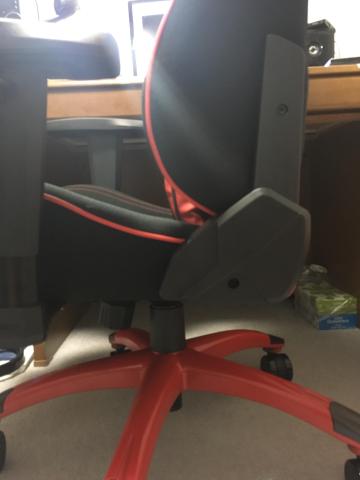 ガスシリンダーとアームレストの可動域をもう少し大きくしてほしい。