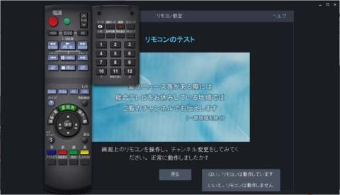 画面のリモコンからチャンネルを変えて動作テストを行います。