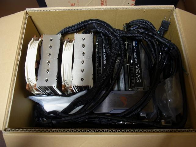 当初はマザーボードの空き箱を使おうと試みたのですがサイズが合わず