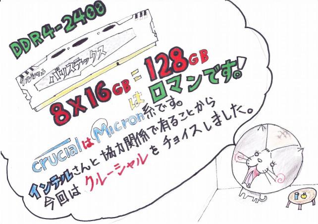 〇1枚当たり16GBのメモリーも一般的にも買いやすい価格帯になったので8枚のせてみます