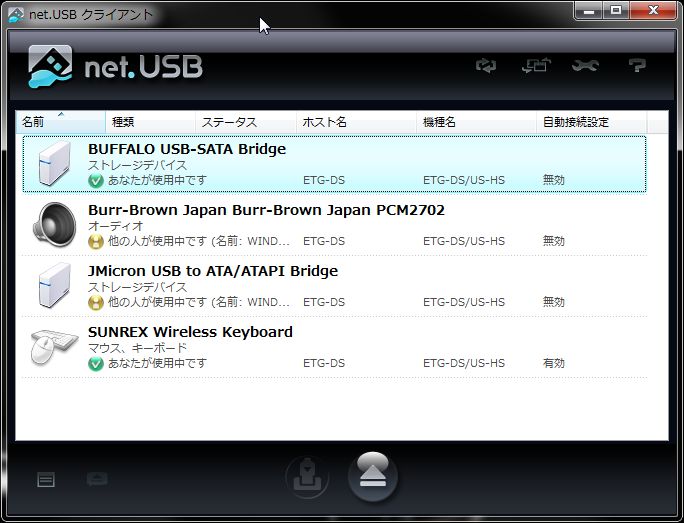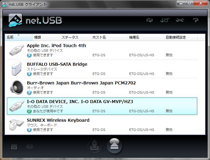 本品を使って一番便利に感じた点は、USBデバイスサーバーにUSBデバイスを繋ぎっぱなししたまま、ソフト上で接続・切断が出来ることに尽きます。