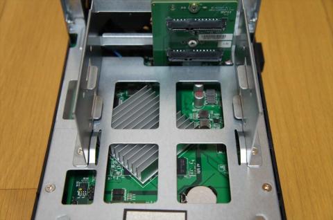 横側からの写真を撮ってませんが、HDD側の真ん中にねじ穴がないので、両サイド1カ所ずつしか留められていません。