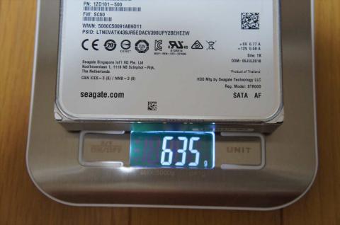 重量は635gと、7枚のプラッタを搭載しているだけ重いですね。