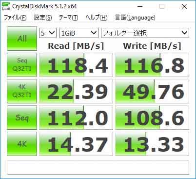 ギガビットの限界値である125MB/sに迫るスペックです。