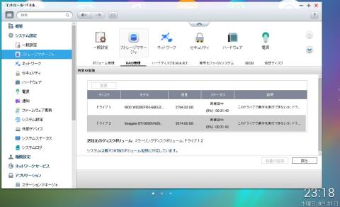 QNAP TurboNAS HS-210のRAID1再構築は5時間ほどかかります。ただこれが終了しても容量は10Tになりません。