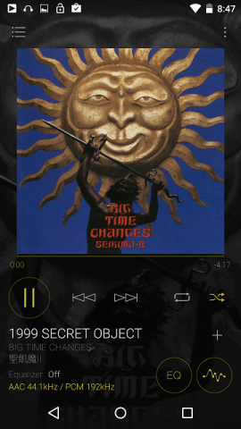 ジャケット写真が上部にデカデカと表示され、ジャケット枠下の水平線が再生位置を表しています。