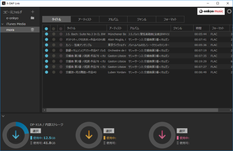 ウィンドウ下の下矢印はDP-X1Aへの楽曲転送ボタンです。