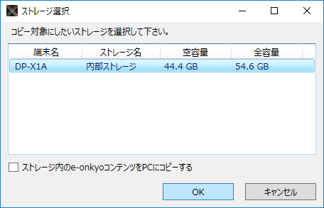 DP-X1AはSDカード2枚利用できるので、本体、SDカード1、SDカード2と転送先を指定できます。