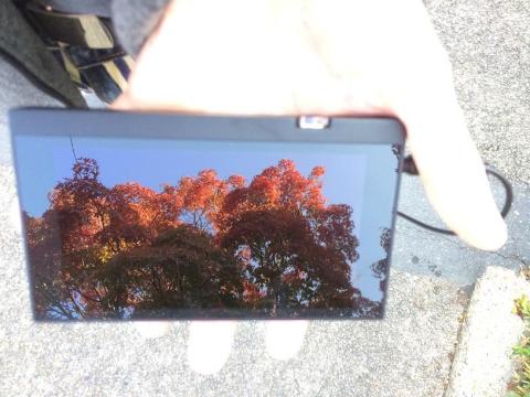 写真では、私の顔などが写りこまないように、角度を調整して撮影したため、分かり辛いですが、液晶面は反射率の高い、クリスタルの様なブラックです。