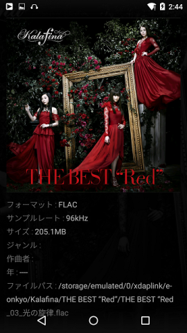 ジャケット写真をタップすると、フルサイズアルバム表示と曲情報が表示されます。