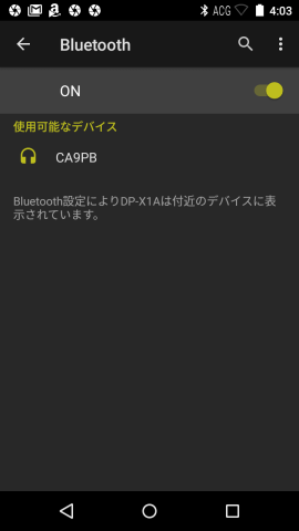 まずは、DP-X1Aの設定画面から、Bluetooth機能をONにしよう。