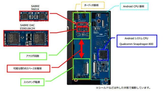 通常、ポータブル機ではサイズを優先にするためにパーツを小型の基板に高密度で実装するのが常だが、DP-X1Aはオーディオ基板とAndroid基板を分離、さらにオーディオ回路もアナログ部と電源部を極力離すデザインにするなど、とてもこだわった作りになっている。