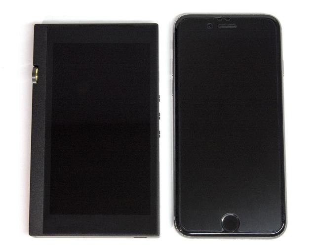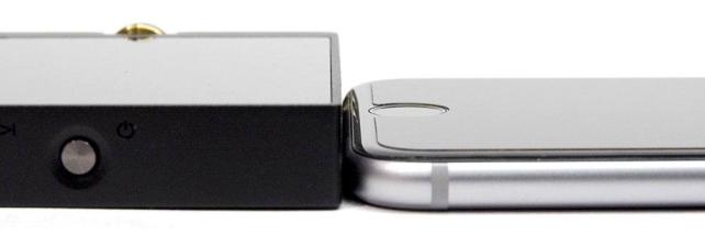 左がDP-X1A、右がiPhone 6Sである。高さは控えめなものの、横幅はDP-X1Aの方が太いのが分かるだろうか。