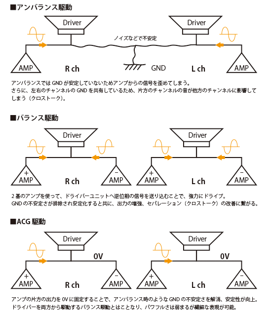 2種類のバランス出力:バランス(BTL)駆動とACG駆動