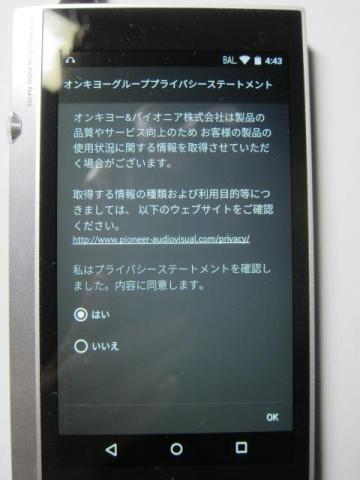 しばらくすると,androidの初期設定画面になります.言語,wifi設定などを行うと,やっとホーム画面になりました.ココまでの感想としては,非常に時間がかかるということで,普通のDAPではなく,android端末であるということを実感させられます.