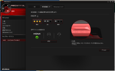 実は単体録画モードでもHDMIのOUTから映像(1080p@60Hz)が出力されています。PC録画モード時はパススルーですが、単体録画モードでもパススルーは動作としてやや不自然かな?と・・・