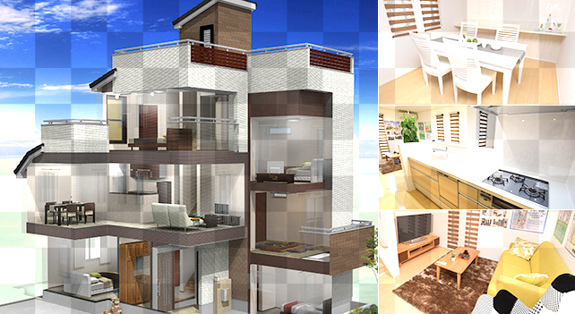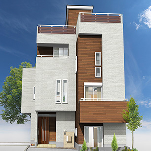 建物の2階のダイニングスペースに黒板が設置されており、家族のコミュニケーションの場や子供の勉強コーナーなどとして利用できるほか、最上階にはスカイバルコニーを設置し、屋上でのBBQなどといった団欒の場として利用可能です。外観は人気の高いナチュラルモダンデザインにこだわり、新しさと洗練さを兼ね備えた住まいを演出しています。