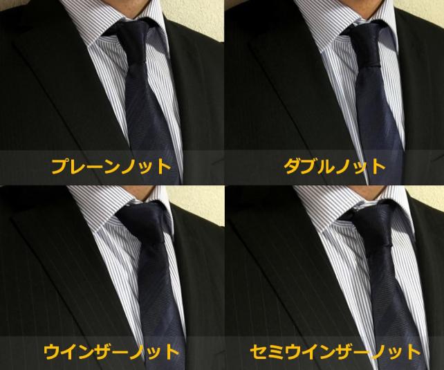 ネクタイの結び方ですが、私は4パターンの結び方をしています。