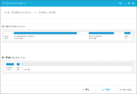 ソースとターゲットの選択が完了すると、クローンのイメージが表示されます。