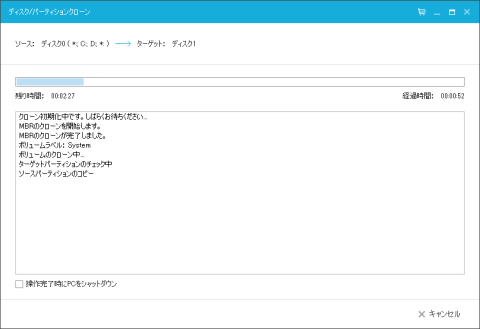 完了後にシャットダウンにしておけば、クローニング終了後にPCの電源落としてくれるので、開始後放置が楽ですね。