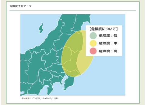 予知は関東や東北がほとんど(一番遠くて長野・新潟あたり)で、残念ながら関西以西や北海道の予測はないようです。