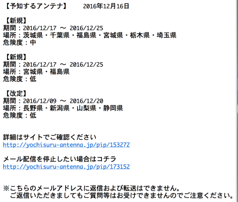いちいちサイトが更新されたかどうかをチェックしなくても予知情報が更新されたらわかるのが便利ですね。