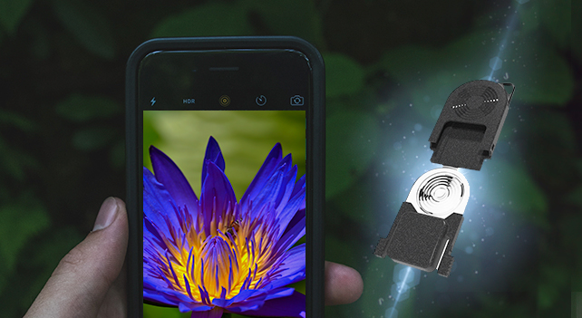 「ハルスコープ」はスマートフォンに装着するだけで近距離の撮影ができるマクロレンズです。専用アプリにより最大40倍の高倍率撮影が可能になるので雪の結晶など通常のスマートフォンでは撮影できない小さなものを撮影することができます。趣味はもちろん、教育や仕事など幅広いシーンで活躍します。