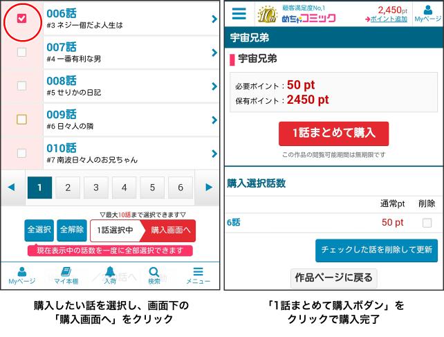 購入の方法は、欲しい話の横のチェックをつけて購入画面へのボタンを押すだけ