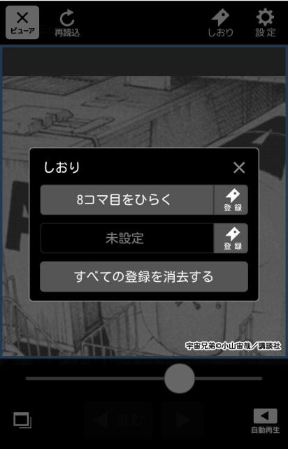 コマの移動方法は、「進むボタン」や画面をタップして進んでいく方法と、自動的にコマが進んでいく「自動再生」を選ぶことができます。