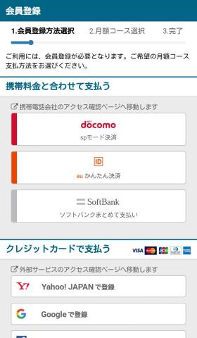 スマホでアクセスすると会員登録ボタンが表示されるので登録方法を選択。