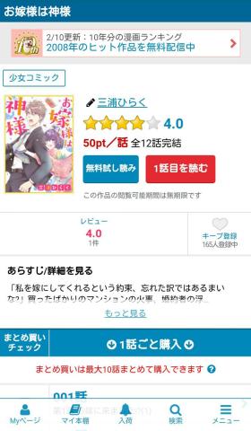 10話まとめ買いでポイントボーナスなどがあると良いなと思います。