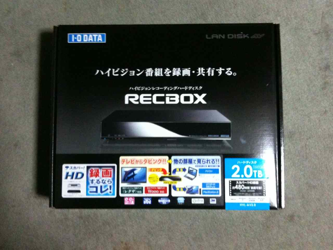 I-ODATA様の『DTCP-IP対応ハイビジョンレコーディングハードディスク「RECBOX」の2.0TBモデルHVL-AV2.0のレビューに当選させて頂きました。 「RECBOX」の2....