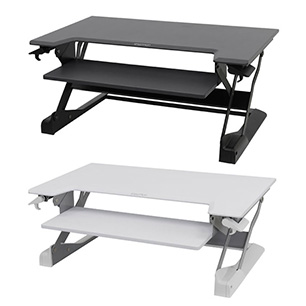 完全組立済みの状態で出荷されるため、特別な据え付け作業やツールを用いた調整は不要。デスクに直接載せるだけで設置が完了します。作業中も立ち上がって、座りすぎによる健康リスクを解消しましょう。