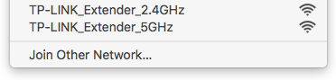 RE305を壁のコンセントに刺し、Mac(またはPC)から次のSSIDのどちらかで接続する: