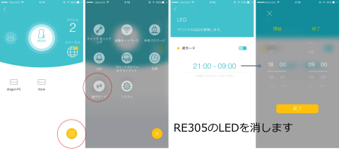 RE305の接続設定やアクセス制御がスマホアプリから簡単にできる。