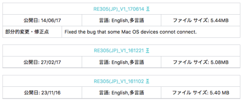 (追記)RE305(JP)_V1のファームウェアは、ホームページには2016/12/21と2016/11/2の2つしかない。ベータの日付2017/4/6からすると、以前からアップデートの準備が進められており、たまたま直近の最新ベータがこの日付だったのだろう。RE305を購入するかどうかは、ファームウェアのバージョンアップを確認してから決めても遅くないだろう。