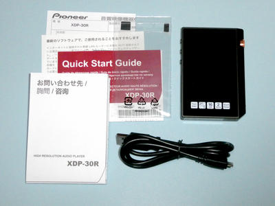 private XDP-30R本体にUSBケーブル、保護フィルム、保証書、取説、クイックスタートガイド、ソフトウェア更新のお知らせ。