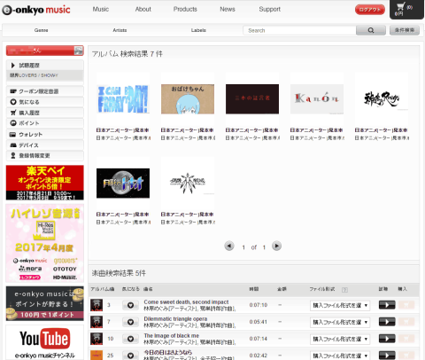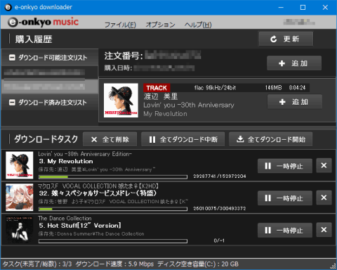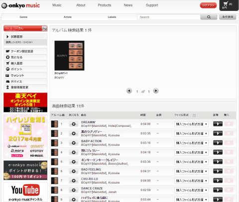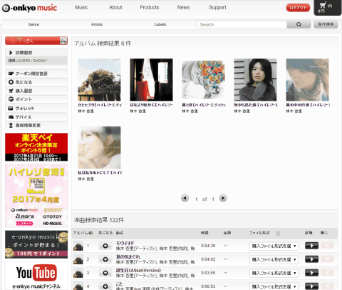 e-onkyo musicのアカウント情報を入力すると、購入楽曲リストが表示されます。