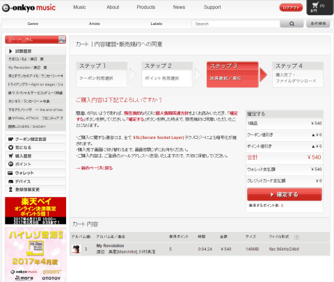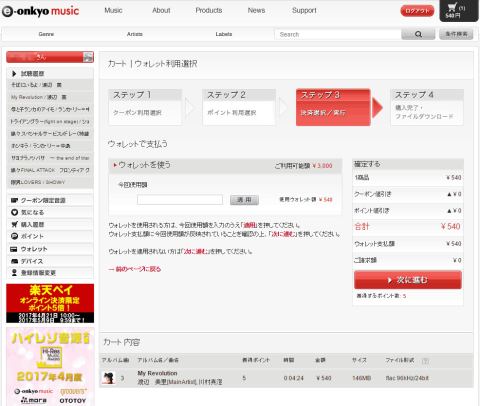 今回のレビューに際して3,000円分のe-onkyo music プリペイドカードをいただいているので、それを使用します。