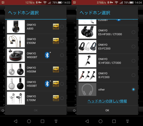 アプリをインストールして起動すると、ヘッドホンの選択画面が表示されます。